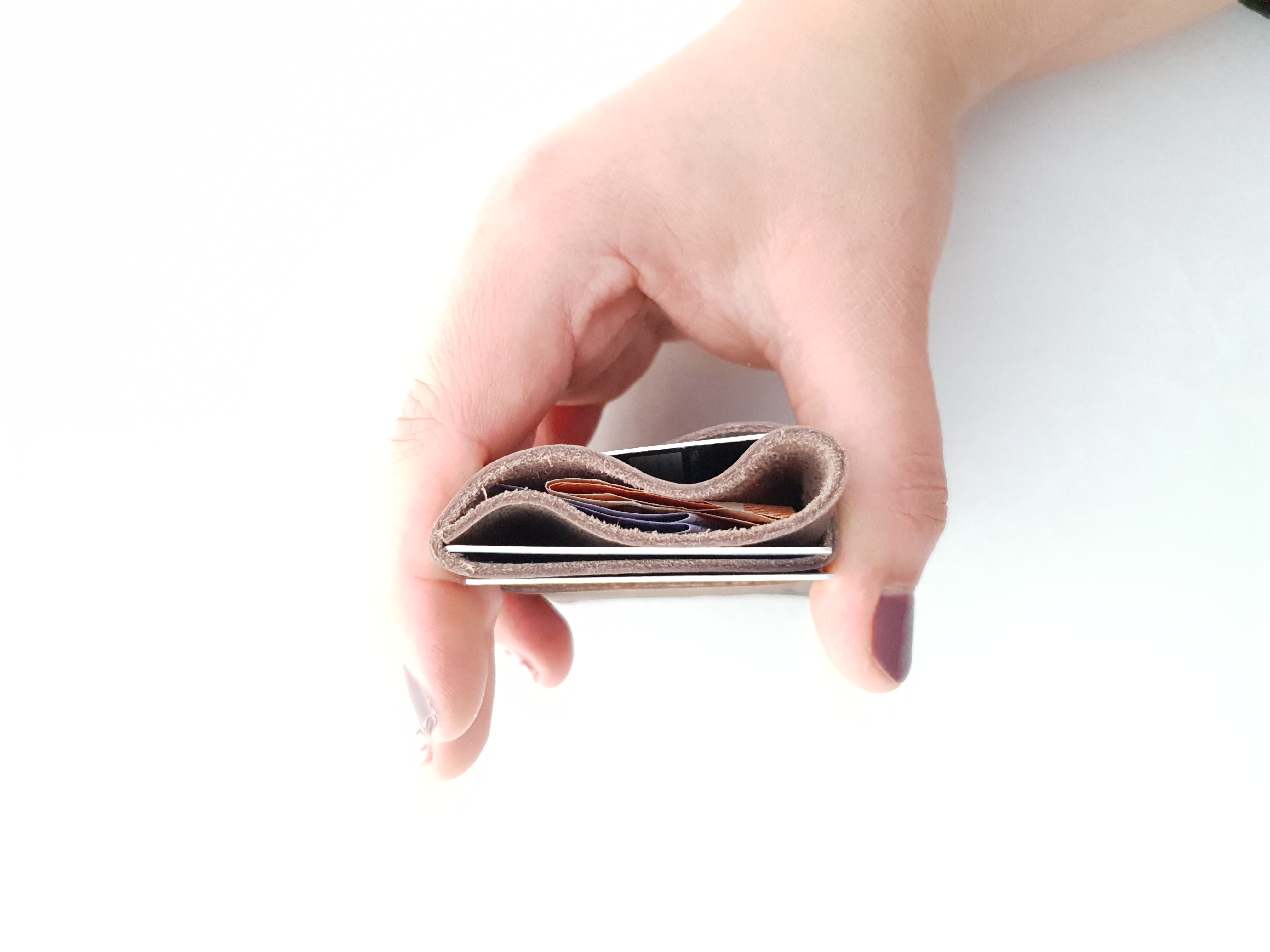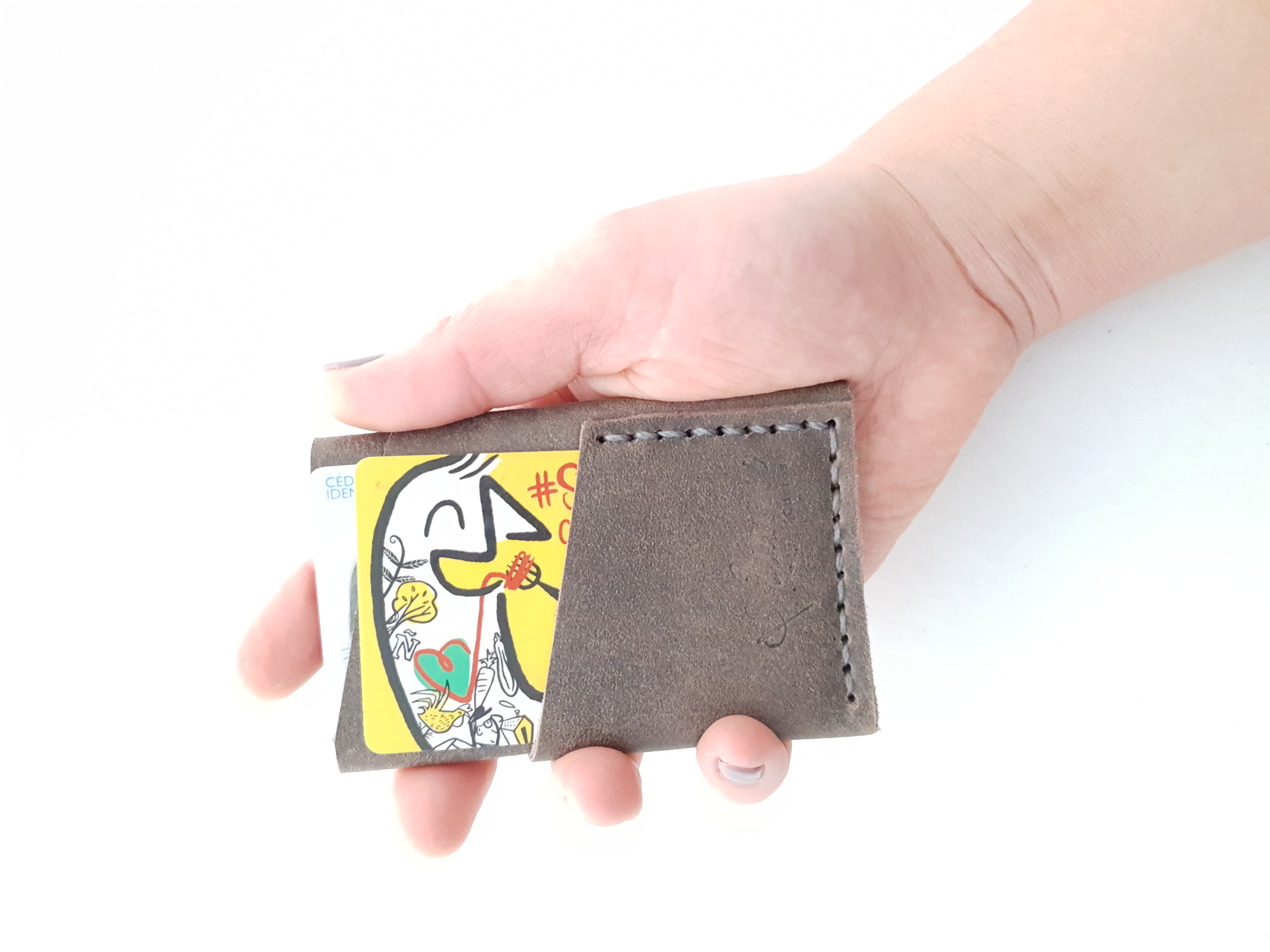 Tarjetero de cuero para llevar tu dinero y tus documentos en un formato cómodo, versátil, y un tamaño ideal para guardar en el bolsillo. Organiza todo de la forma que mas te guste.